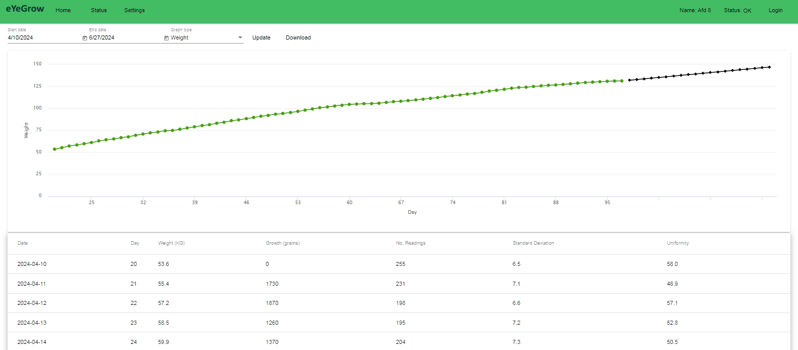 Door uw dieren regelmatig te wegen, houdt u het groeiproces in uw stal nauwlettend in de gaten. Hoeveel nemen mijn dieren dagelijks toe in gewicht? Groeien ze allemaal in hetzelfde tempo? Is de groei in elke ronde consistent? Wat is de impact van ziekte op hun groei? Dit zijn allemaal vragen waarop een automatisch weegsysteem voor dieren antwoord kan geven.