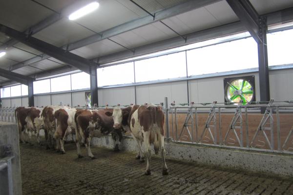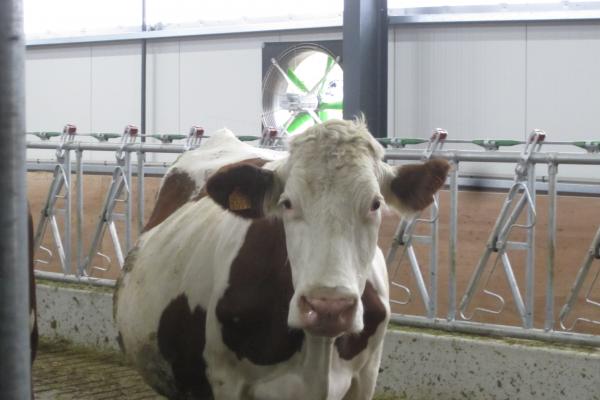 Een ventilatiesysteem in een melkveehouderij verbetert de luchtkwaliteit door overtollig vocht, schadelijke gassen en stof te verwijderen, waardoor een gezondere omgeving voor de koeien ontstaat. Het helpt hittestress te verminderen, wat cruciaal is voor het comfort van de koeien, de voeropname en de melkproductie. Door de luchtvochtigheid en temperatuur te regelen, ondersteunt het ook de gezondheid van de luchtwegen en de uiers, wat bijdraagt aan het algehele welzijn en de productiviteit van de kudde.
