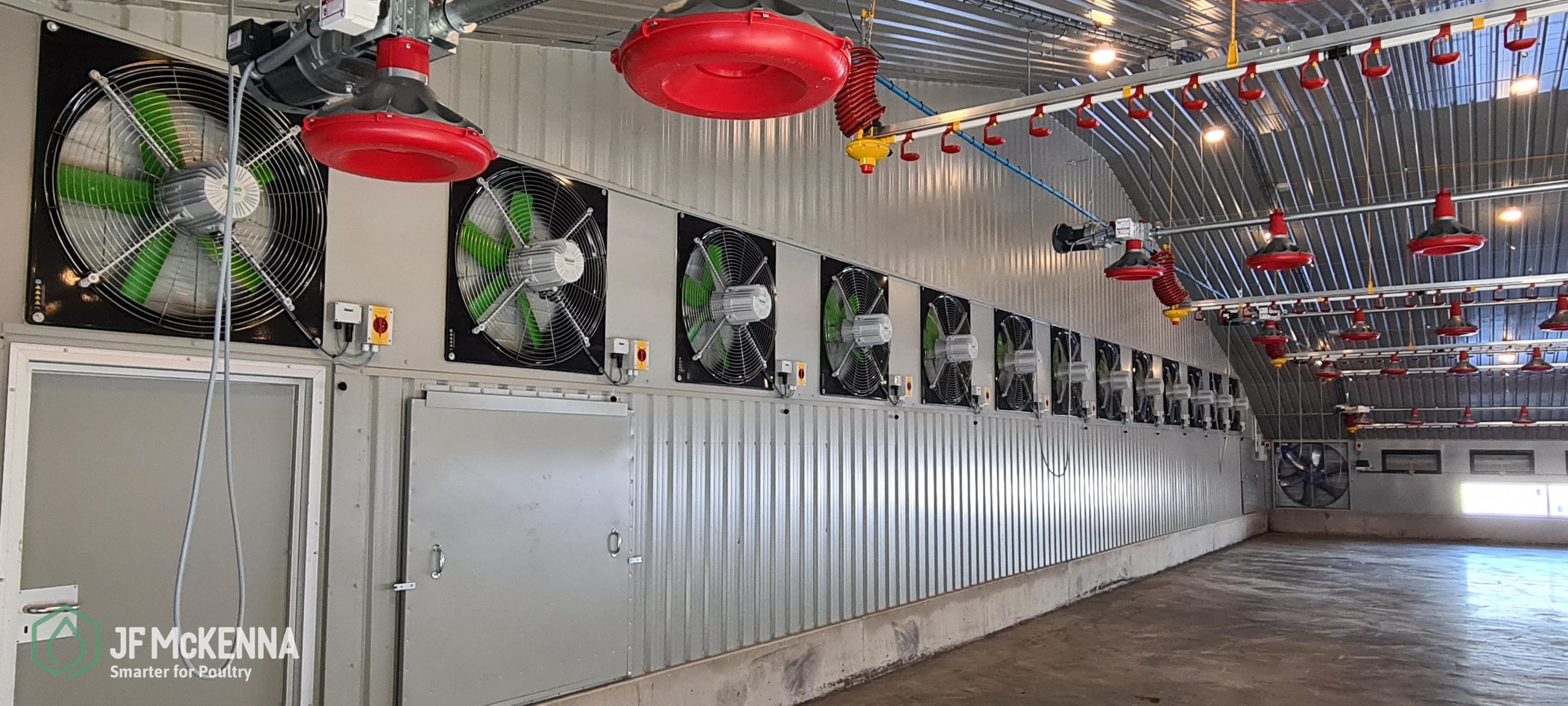 De twee stallen zijn gevestigd in Powys Noord-Wales en zijn eigendom van de familie Mountford. De stallen huisvesten meer dan 100.000 vleeskuikens die worden geproduceerd voor Maeler Foods. Gary Mountford heeft voor zijn nieuwe bedrijf voor de stalconcepten van JF McKenna Ltd. op basis van aanbevelingen, de kwaliteit van de apparatuur en de uitstekende service. Begin februari zijn de stallen in gebruik genomen en de resultaten zijn zeer goed.