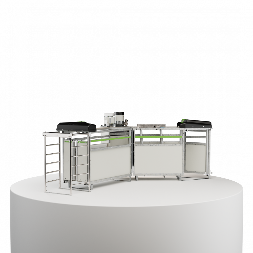 Met een speciale selectiedeur kunt u de zeugen bij de uitgang selecteren naar een apart deel van de stal. De dubbele sensoren van de computer registreren betrouwbaar of een zeug het station daadwerkelijk verlaten heeft of teruggegaan is