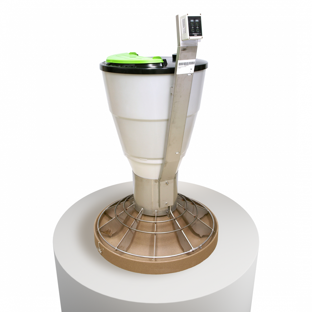 De Rondomat doseert het voer helemaal automatisch naar behoefte. Zodra de sensoren in de trog geen voer meer aantreffen wordt er een kleine portie voer, gemengd met water in de trog gedoseerd. De hoeveelheid water door het voer is instelbaar en kan na verloop van tijd afgebouwd worden. Het voer in de trog is altijd vers en smakelijk voor de biggen. U zult merken dat er nauwelijks voer verspild wordt.